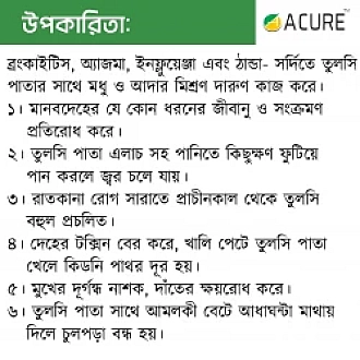 আসুন জেনে নেই তুলসীর পাতার উপকারিতা- ১. ঠাণ্ডা-কাশি থেকে রক্ষা পেতে তুলসী পাতা ও আদার রসের সঙ্গে একটু মধু মিশিয়ে খেতে পারেন। এতে ঠাণ্ডা-কাশি ভালো হবে। ২. সকালবেলা খালি পেটে তুলসী পাতা চিবিয়ে খেলে মুখের রুচি বাড়বে। ৩. তুলসী পাতার ...